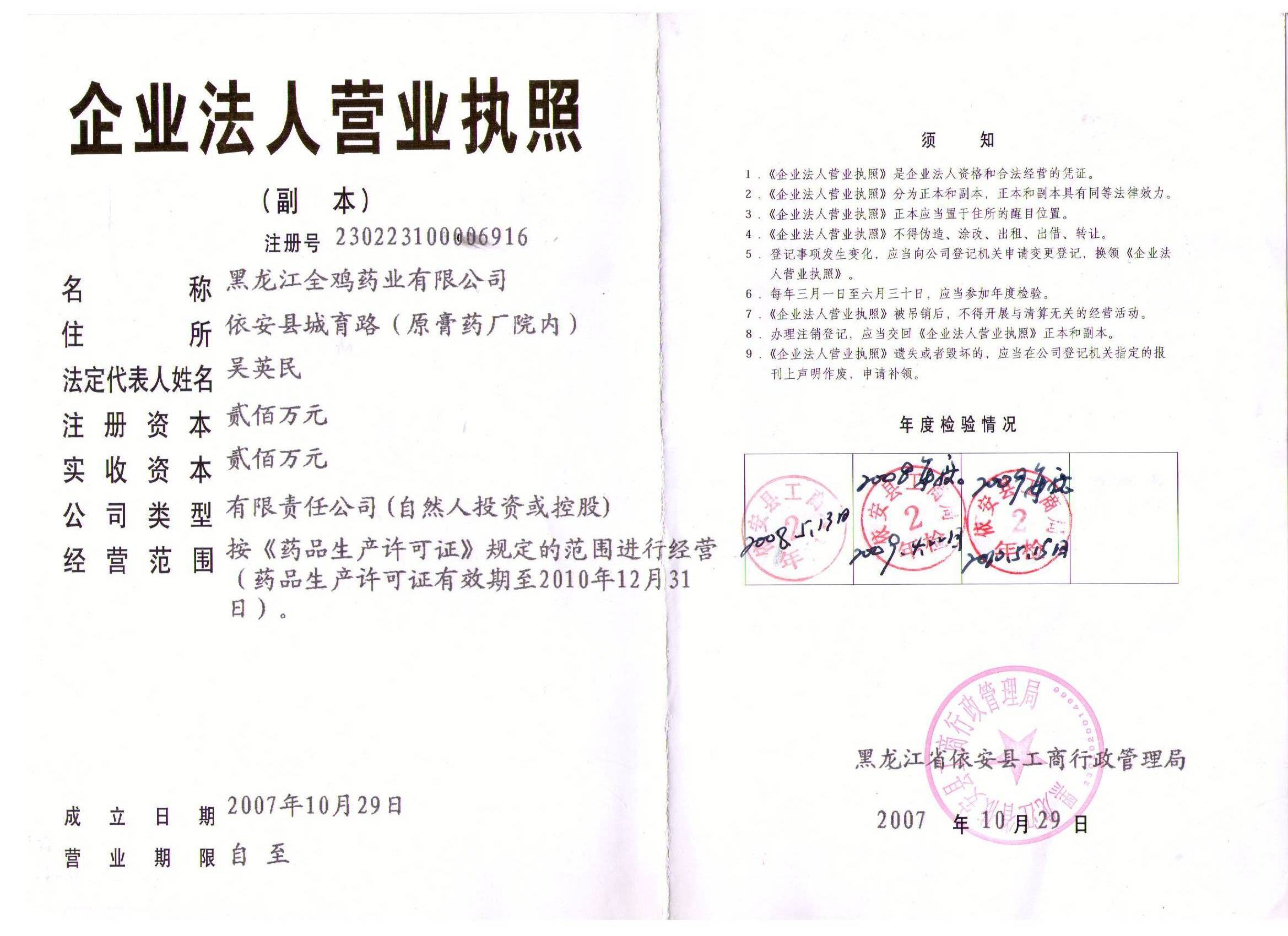 公司名稱:黑龍江全雞藥業(yè)有限公司 聯(lián)系人:于海波 電話:0451-81666588...