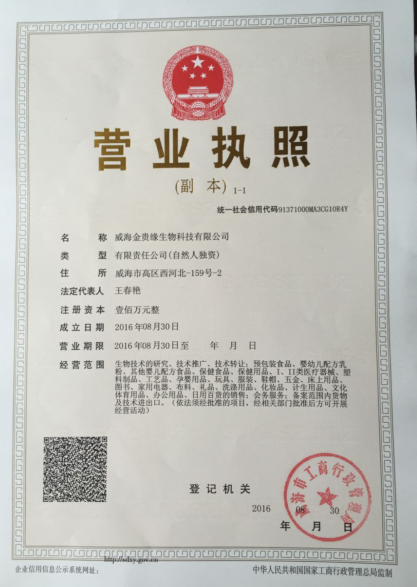 公司名稱:威海金貴緣生物科技有限公司 聯(lián)系人:王松濤...
