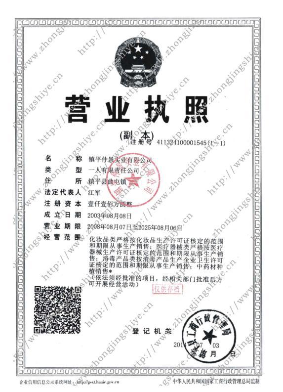 鎮(zhèn)平仲景實(shí)業(yè)有限公司創(chuàng)建于1988年,其前身是“鎮(zhèn)平臥龍制藥廠”和“鎮(zhèn)平仲景保健日化廠”,1998年合并為“鎮(zhèn)平縣仲景藥業(yè)有限公司”。2014年更名為“鎮(zhèn)平仲景實(shí)業(yè)有限公司”,從事“化妝品”、“醫(yī)療器械”、“消毒劑”生產(chǎn)銷售和中藥材的種植銷售。目前,鎮(zhèn)平仲景實(shí)業(yè)有限公司是國內(nèi)同行業(yè)中資格最老、擁有批準(zhǔn)文號(hào)最多的廠家之一,是集研發(fā)、生產(chǎn)、銷售為一體的大型企業(yè)。鎮(zhèn)平仲景實(shí)業(yè)有限公司連年被政府授予“重合同、守信譽(yù)企業(yè)”、“納稅大戶”等稱號(hào)。經(jīng)營風(fēng)格始終如一,不求...